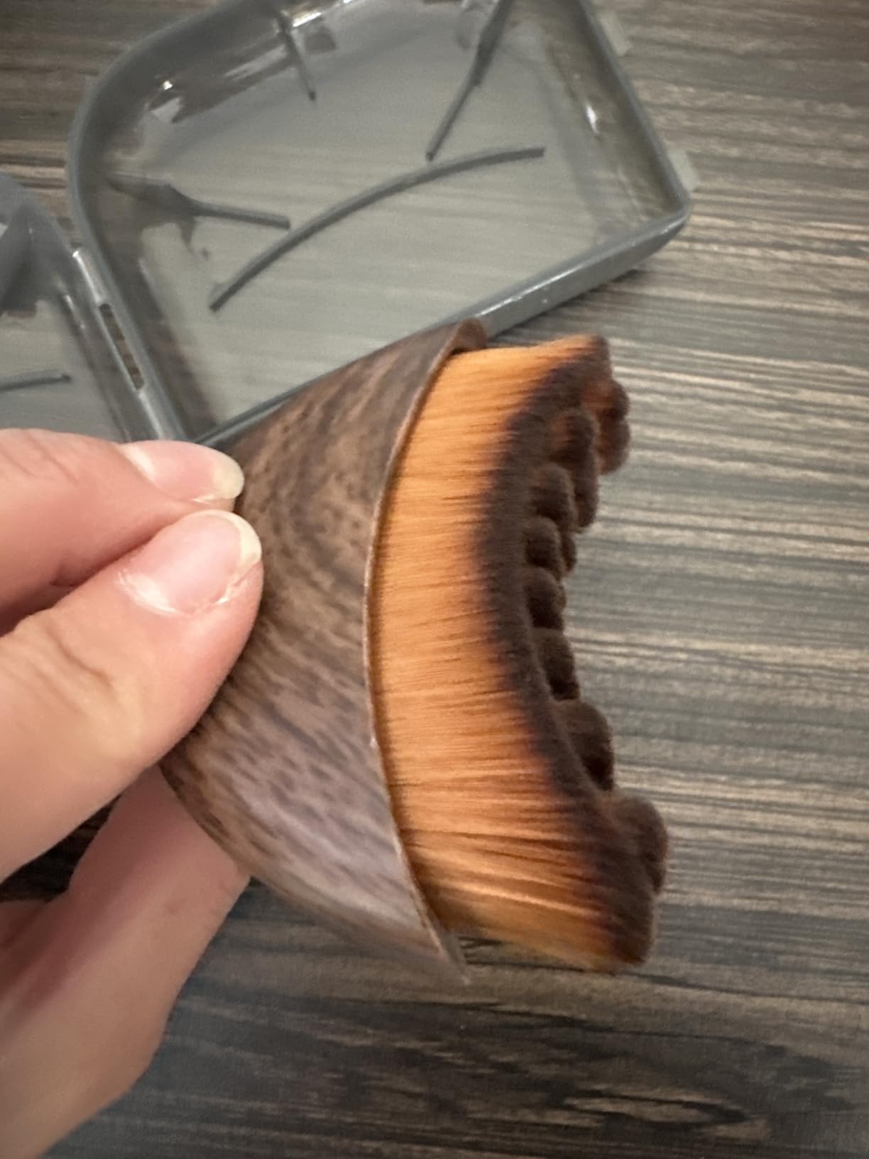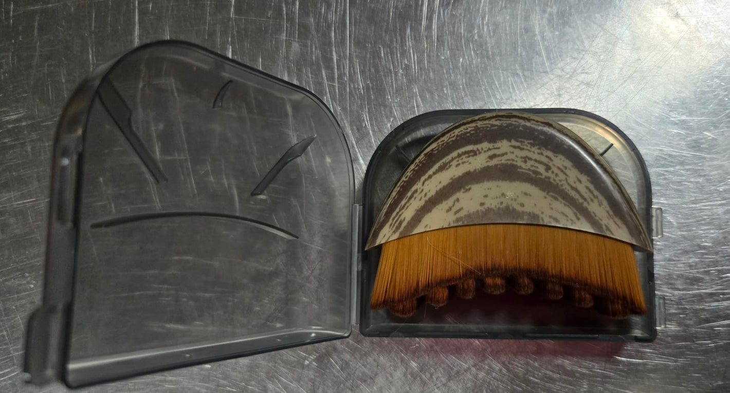 After each use, gently tap the brush to remove any residue. Once a week, clean the bristles with lukewarm water and a mild soap, rinse thoroughly, and allow the brush to air dry completely with the bristles facing down.
